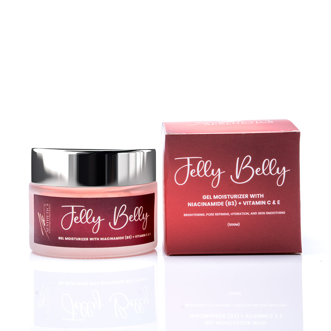 Refresh and hydrate your skin with the lightweight Jelly Belly Gel Moisturizer, packed with the power of Niacinamide (B3), Vitamin C, and Vitamin E. Its water-based gel texture absorbs quickly, delivering intense hydration without greasiness while brightening and protecting your skin from daily stress.