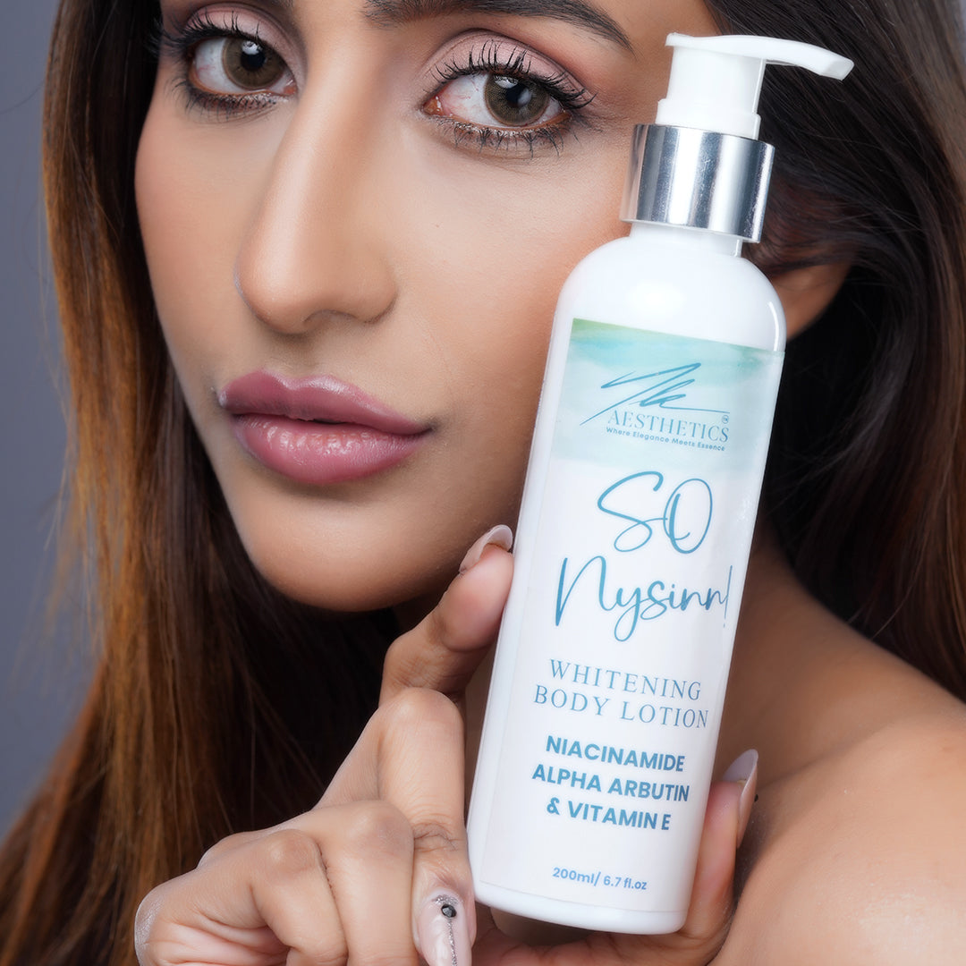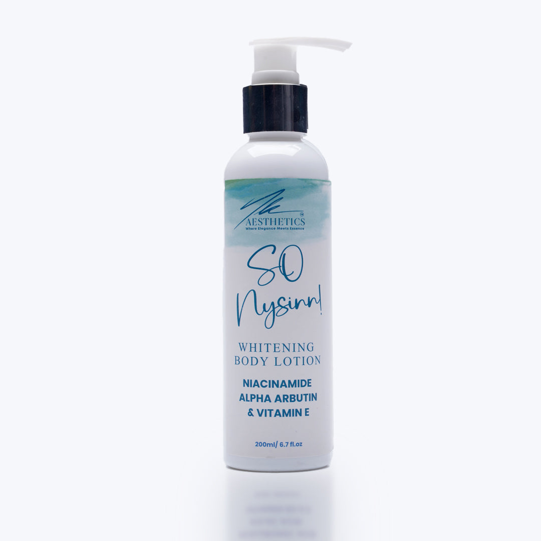Pamper your skin with So Nysinn Whitening Body Lotion, a luxurious formula crafted to deeply nourish while enhancing your natural brightness. Enriched with advanced whitening actives and moisturizing ingredients, it helps reduce dullness, fade uneven spots, and restore silky-smooth, radiant skin from head to toe.